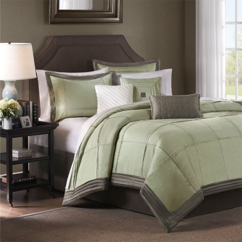 Carlyle is a phenomenally constructed quilt that is good for any room in your house. The mushy cele.Material: Polyester.Patten: Solid.Set Includes: set embraces: cover, 2 shams and three dec pillows.Size: Queen: 90x90"/20x26+2"(2)/18x18"/16x16"/12x20". Carlyle is a phenomenally constructed quilt that is perfect for any room in your house. The mushy celedon inexperienced in the center has satin embroidery stitching and flat pintucks that provide texture and dimension to this fake silk dupioni fabrication. The cover and shams are framed with a good looking taupe faux silk dupioni. The reverse of the cover is taupe.. ... Read more Madison Park Carlyle 6pcs Duvet Set - Sage - Queen
